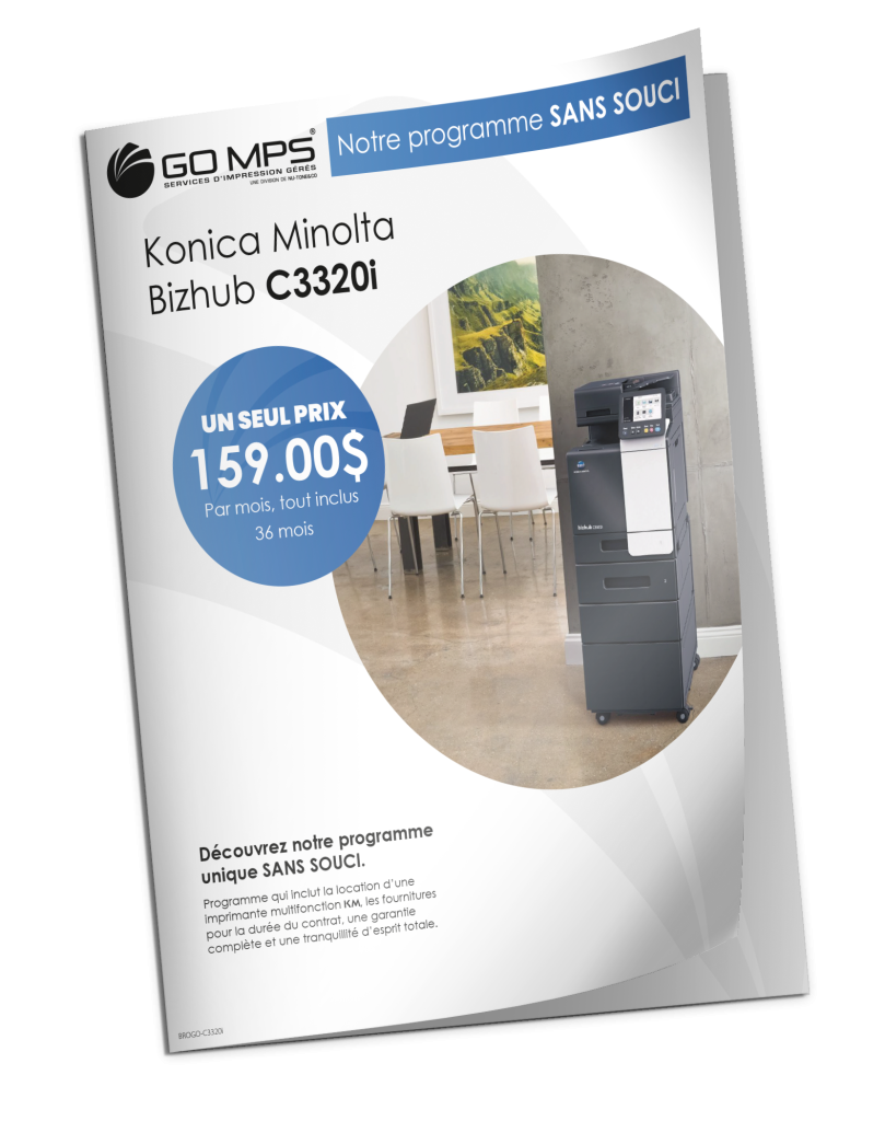 Programme qui inclut la location d’une imprimante multifonction KM, les fournitures pour la durée du contrat, une garantie complète et une tranquillité d’esprit totale.
